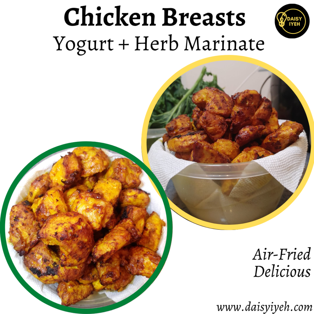 I was making butter chicken but my son got hooked on them; and as a picky eater, I was too excited to know I had found the key to unlocking his protein consumption. I used an air-fryer to further reduce oil consumption- thereby making it super healthy and yummy.